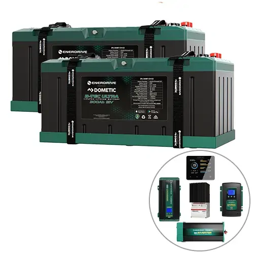 Enerdrive B-TEC Ultra 2 x 300Ah Lithium Battery, Charger, Inverter, Monitor & MPPT Bundle, 5 Year Warranty. The Enerdrive 2 x 300Ah lithium battery, when used in combination with a 40A DC-to-DC charger, is typically part of a setup commonly used in various applications, including off-grid power systems, recreational vehicles (RVs), boats, and other mobile power needs.