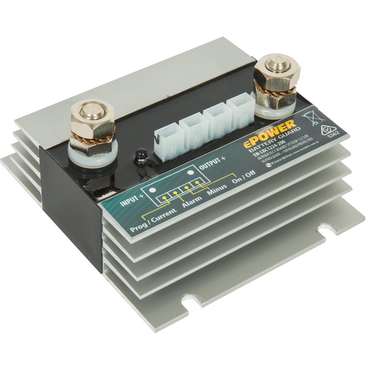 Enerdrive ePOWER 12/24V 200A Low Battery Cutout IP66, 5 Year Warranty. The ePOWER Low Battery Cutoff protects your batteries from non essential loads before the battery is completely discharged causing damage to batteries and potently denying your engine cranking power. These Low Battery Cutouts also protect connected electrical appliances against over voltage. The voltage load is disconnected whenever the DC voltage goes beyond 16V (12V mode) or 32V (24V mode).