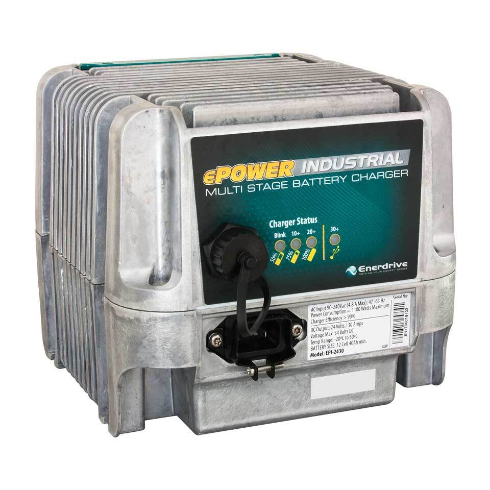 Enerdrive ePOWER 36V 20 Amp Industrial Battery Charger. Enerdrive’s ePOWER Industrial Battery Charger is built to withstand vibration and exposure to dust or moisture typically found when used in typical on-board or industrial applications. Charge Algorithm updates and downloadable charger data logs are easily accessible via the use of a USB memory stick.