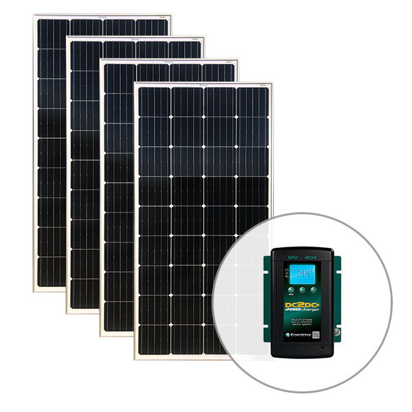Product Type 12v 40Amp DC2DC Battery Charger + 190W Mono Crystalline Fixed Solar Panel (x4)