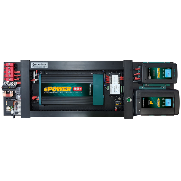 Enerdrive have created many different layouts and dimensional sizes to fit nearly every possible application. From small kits with AC & DC charging and battery monitoring up to kits with 2000w inverters and individual charge/load monitoring.