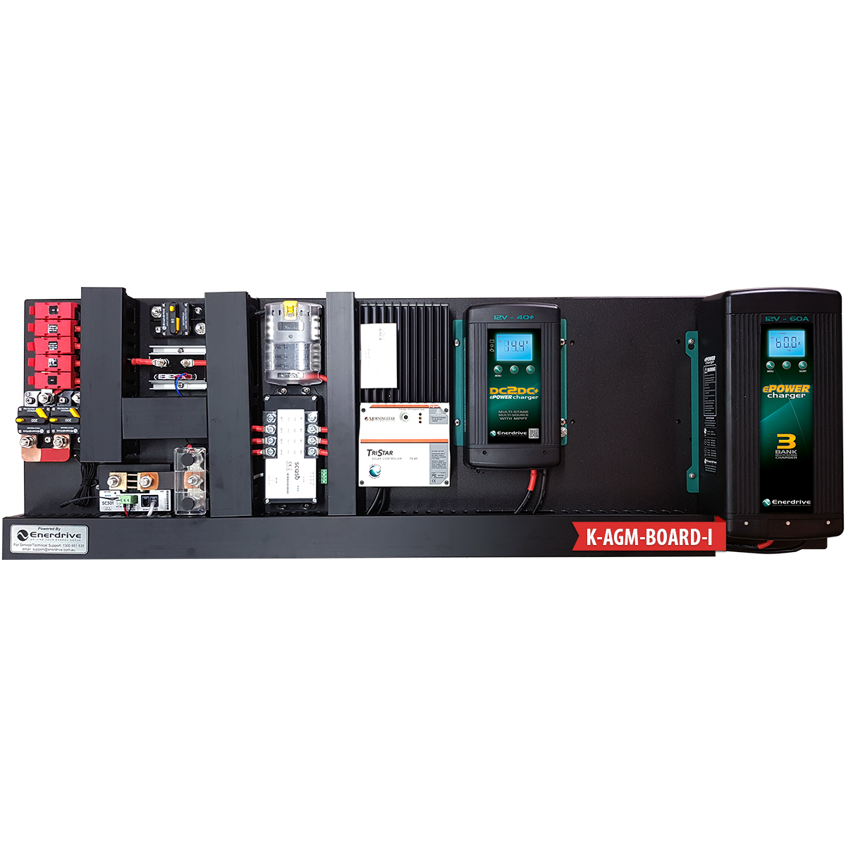These kits are all pre-wired by Enerdrive where possible to keep the kits simple to install. All boards have a full wiring diagram showing each circuit and where to connect your loads, battery and inverter cabling. All items are mounted on a 12mm Black plastic (water & rot resistant) board for simple mounting into the application.