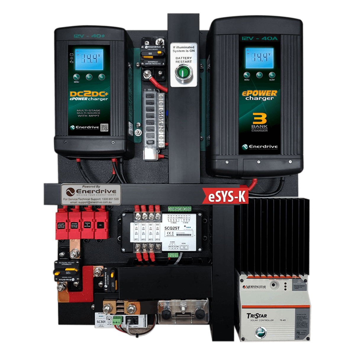 - Enerdrive eSYSTEM-K 40A AC / DC, Simarine Battery Monitor & 45A MPPT