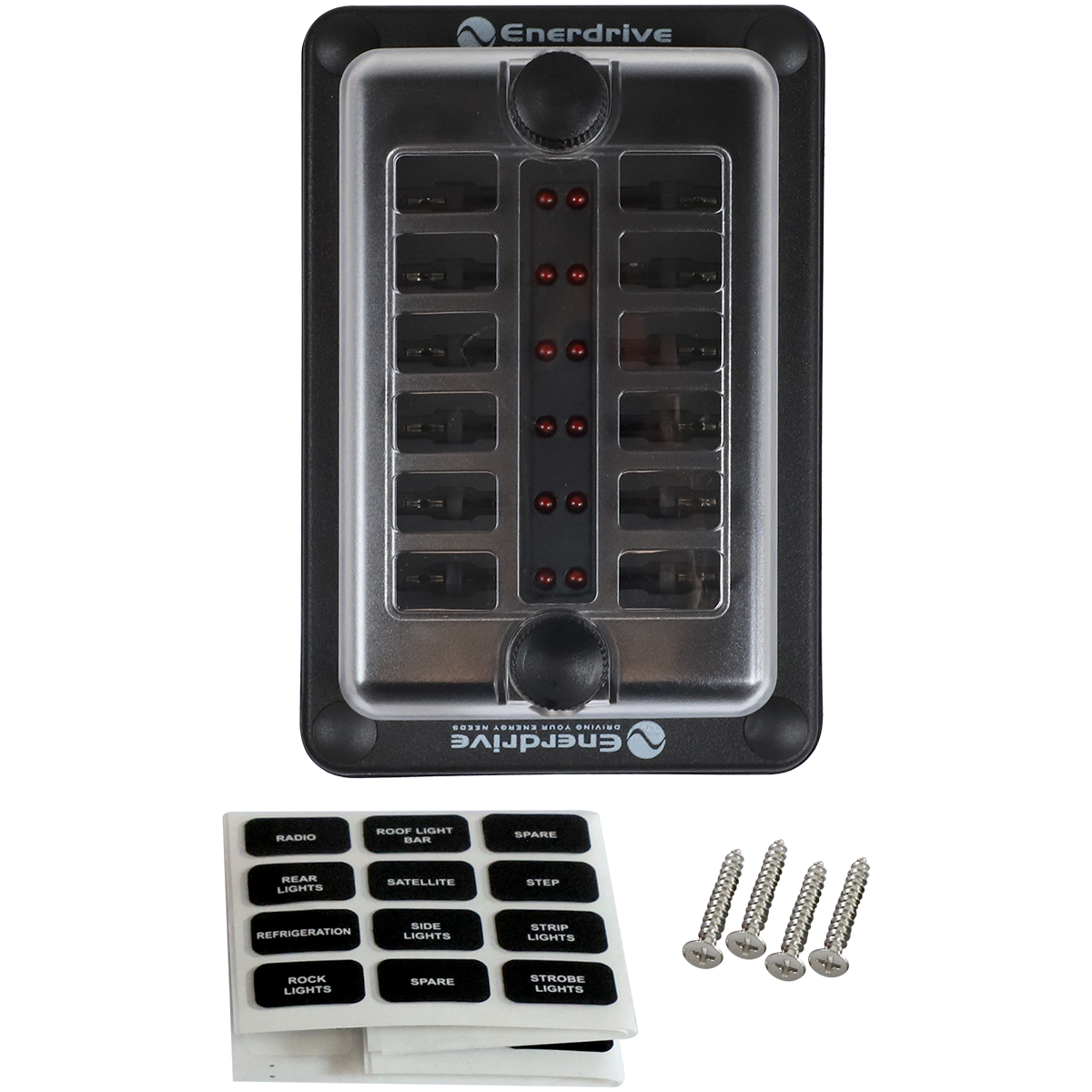 Enerdrive Fuse Block Panel Mount 1 In 12 Out with LEDs, 5 Years Warranty.