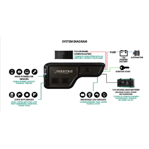 Enerdrive Journeyman System 40DC 2000X designed for utes, 5 Year Warranty. The Enerdrive | Dometic Journeyman has been specifically designed and engineered for ute tubs, providing everything you need to keep your gear powered whilst on the road or on the tracks! Featuring a 2000W Inverter and 40A+ DC2DC with MPPT to charge your battery whilst on the go, or from solar. The innovative design saves space and reduces install time and cabling.