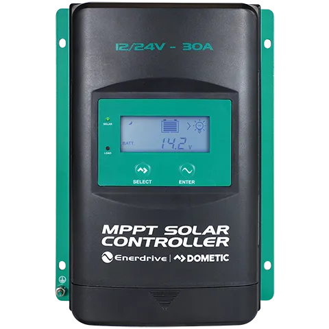 Enerdrive MPPT 12/24V 30A Solar Controller with Display, 5 Year Warranty. The Enerdrive MPPT Solar Controllers adopt the advanced MPPT control algorithm, it can minimize the maximum power point loss rate and loss time, quickly track the maximum power point (MPP) of the PV array and obtain the maximum energy from solar array under any conditions; and it can increase the ratio of energy utilization in the solar system by 20%-30% compared with PWM charging method.