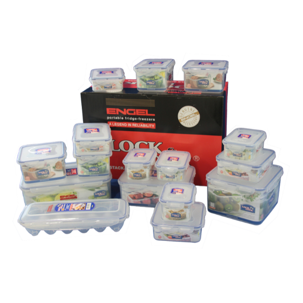 Engel Lock N Lock, 1 Year Warranty. Keep your food fresh and organised with this Lock & Lock container set. Featuring stackable, quad-lock lids for a 100% airtight and liquid-tight seal, these durable containers are microwave and dishwasher safe.