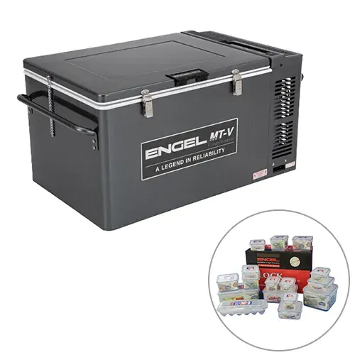 Engel MT60F 60 Litre Chest Fridge Freezer, 5 Year Warranty. Introducing the New Engel MT-V Portable Fridge Freezer Series featuring a new gunmetal metallic finish and improved handles & corner protectors. This series are still powered by Engel's secret weapon, the highly efficient and robust Sawafuji swing motor which still boasts the lowest maximum power consumption in the market.