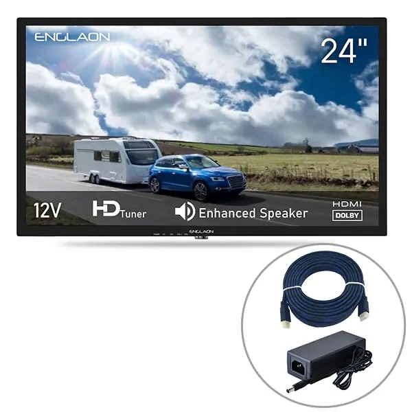 Englaon 24’’ HD LED 12V Caravan TV, 1 Year Warranty. The ENGLAON LED24M30 is one of our best-selling 12V TVs of all time. It’s a purpose-built television with a powerful HD LED screen and a built-in digital tuner. This is the perfect option for caravanners that just want a dependable, durable 12V television and aren’t interested in all the features that come with a Smart TV.