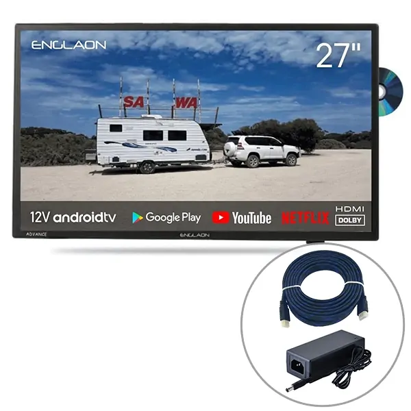Englaon 27’’ Full HD Android Smart 12V TV with Built-in DVD player & Chromecast, 1 Year Warranty. Englaon 27” 12V TVs are a perfect middle ground for those that find a 24” a little too small, but 30” and larger are too big. If this sounds like you, then the ENGLAON LED27M80 is for you.