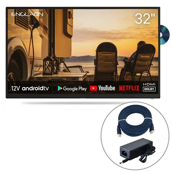 Englaon 32’’ Full HD Android Smart 12V TV with Built-in DVD player & Chromecast, 1 Year Warranty. Experience the luxury of a widescreen HD TV anywhere you go with the ENGLAON LED32M80. Featuring a 32” (80cm) LED screen, a built-in DVD player, built-in Chromecast, Android TV & Bluetooth, you can enjoy a variety of on-demand entertainment whenever you like, wherever you are.