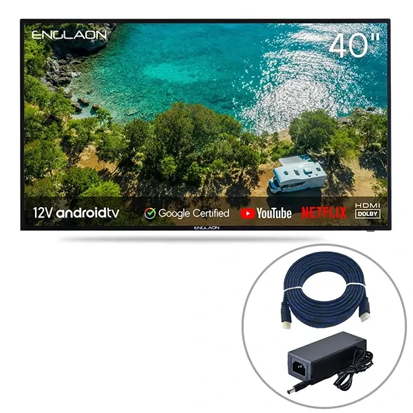ENGLAON 40’’ Full HD Smart 12V TV With Built-in Chromecast and Bluetooth Android 11, 1 Year Warranty. The newest 12V TV range is the ENGLAON X70. As Australia’s first Google-certified 12V television, the X70 has proven popular with caravan, RV and boat owners alike. As the top of the X70 range, the 40X70 has a huge 40” screen (1 meter) that allows you to view all your favourite shows in glorious detail. Ideal for larger caravans, RVs, and boats, and particularly popular for covered outdoor use with families, the 40X70 is one of our most impressive models of 12V TV.
