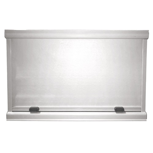 EuroVision Internal Blind & Flyscreen, 1 Year Warranty. Replacement blind & fly assembly to suit the Aussie Traveller EuroVision window. Featuring a white aluminium frame with a multi positional heat reflective blind and flyscreen.