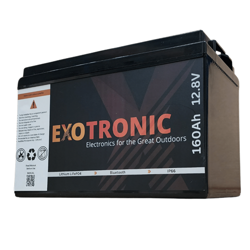 Exotronic 12V 160Ah Compact Smart Bluetooth Lithium Battery, 5 Year Warranty.