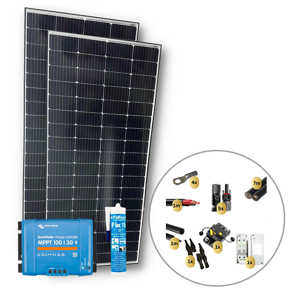 Exotronic 2 x 225W Solar Panel with Victron SmartSolar MPPT 100/30 Charge Controller & Wiring Kit, 5 Year Warranty