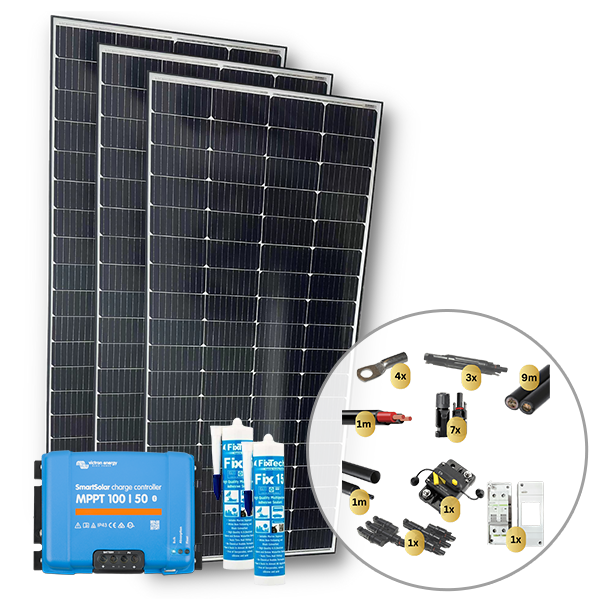 Exotronic 3 x 225W Solar Panel with Victron SmartSolar MPPT 100/50 Charge Controller & Wiring Kit