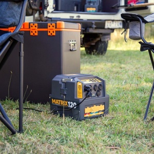 The MATRIX provides and impressive 120 amp-hours of battery capacity or 1536 watt-hours of usable power! This powerhouse can handle just about anything you throw at it, and it even comes with a one-meter battery clamp lead for vehicle battery recovery. It's the perfect companion for those longer getaways to power all of your 12 volt appliances including lights, portable fridges or via USB-A or USB-C for all your mobile devices and laptops.