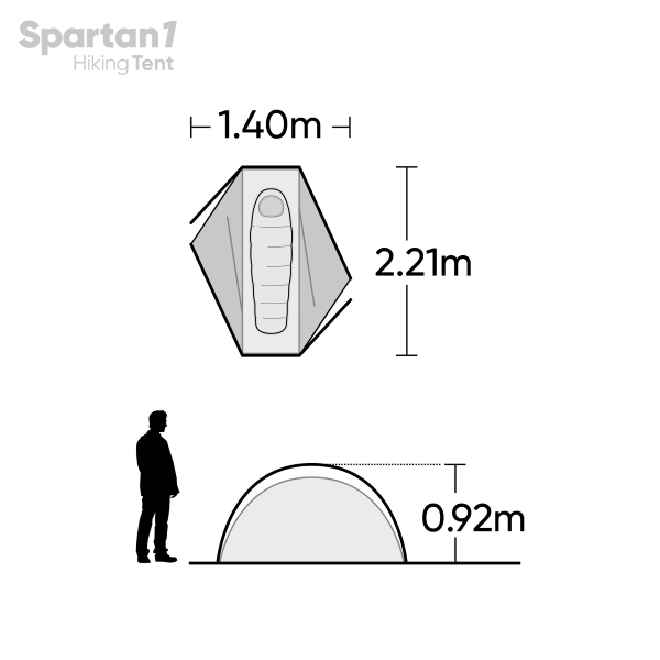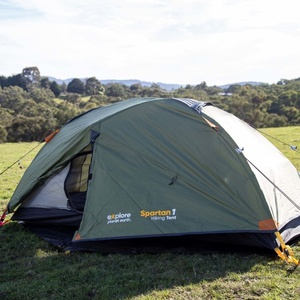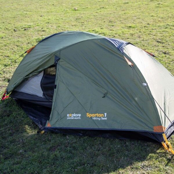 Explore Planet Earth Spartan 1 Person Hiking Tent, 2 Years Warranty. Ideal for your hiking and backpacking adventures, the Spartan 1 person tent has been developed with a 4000mm aqua rating and is coated with an SPF50 UV coating for ultimate sun protection. It is lightweight and easy to assemble with aluminium alloy poles, speed clips, colour coded frame and tri-pegging system. This tent includes enough space for one person, a single room with a double entrance for ease of use and a double vestibule. The doors have a no-see-um mesh, so you will get plenty of ventilation inside your space.