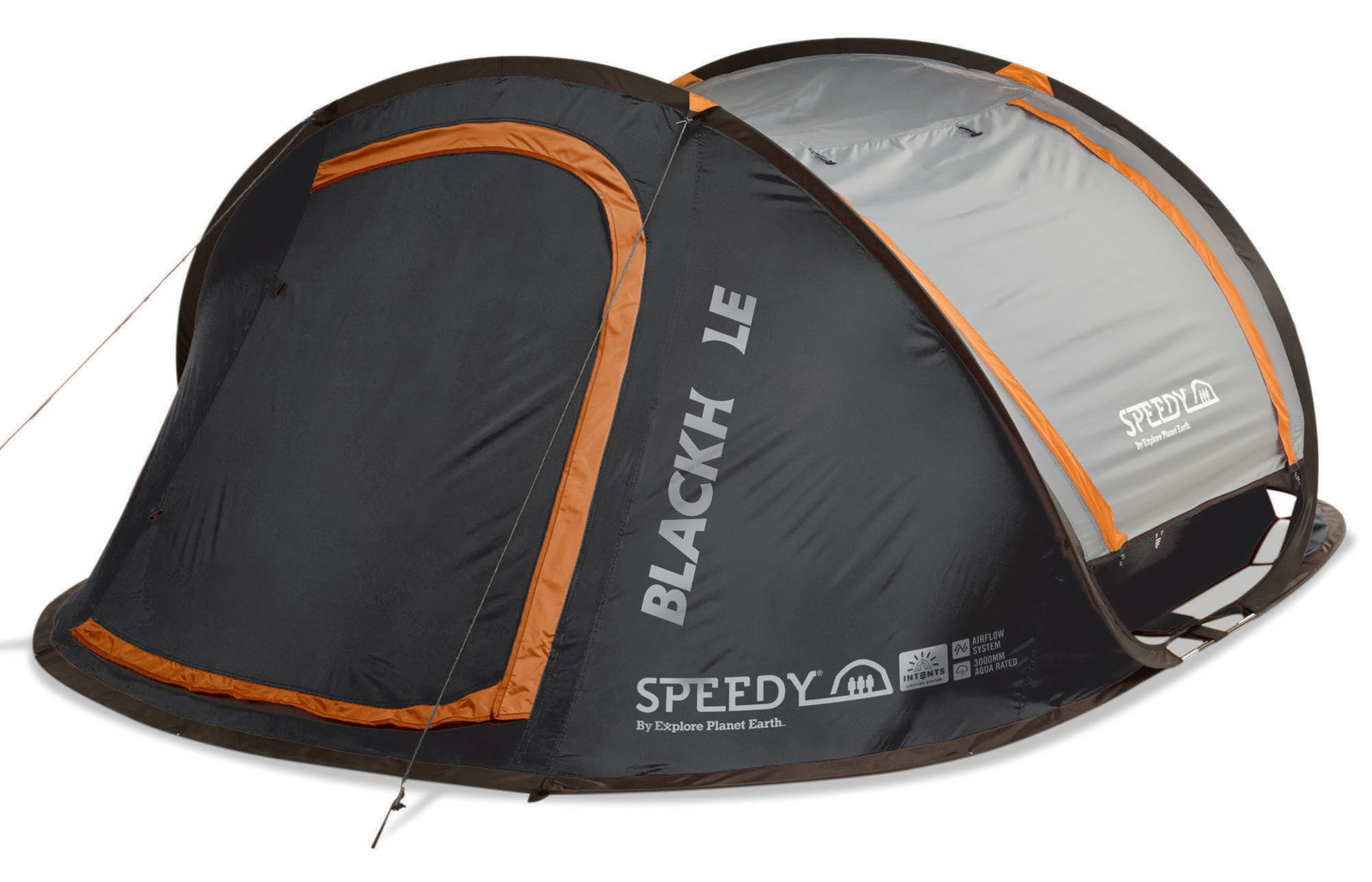 Explore Planet Earth Speedy Blackhole 4 Person Pop Up Tent with LED Lights, 3 Year Warranty. Introducing the Speedy Blackhole 4 person instant pop up tent, same great speedy tent but you can now sleep longer and cooler thanks to the Blackhole feature…black backed fly fabric and black inner cuts out those early morning sunrises and keeps the tent cooler throughout the day.
