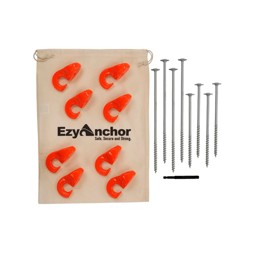 Ezy Anchor Starter Pack Plus, 1 Year Warranty. The Starter Pack Plus is designed for Caravanners, Campers and others who want to start with a multipurpose pack that covers the use of the Ezy Anchors in various terrains including the hard red and gravelly dirt of the Outback, as well as sandy loam soils found in areas such as Coastal Caravan Parks.