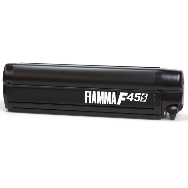 Fiamma F45 S 2.6-4.5m Deep Black Cassette / Royal Grey Fabric Box Awning, 1 Year Warranty. Hoping to spend less time messing about with your bag awning? The Fiamma F45 S makes setup a breeze - quick to roll out, stylish, and tough enough for Aussie conditions. It’s no wonder it’s a favourite with travellers everywhere. Rest assured knowing you're making an investment to your caravan / RV that will elevate your outdoor space. The Fiamma F45s is a winch operated awning and designed for wall installation on campervans and motorhomes.