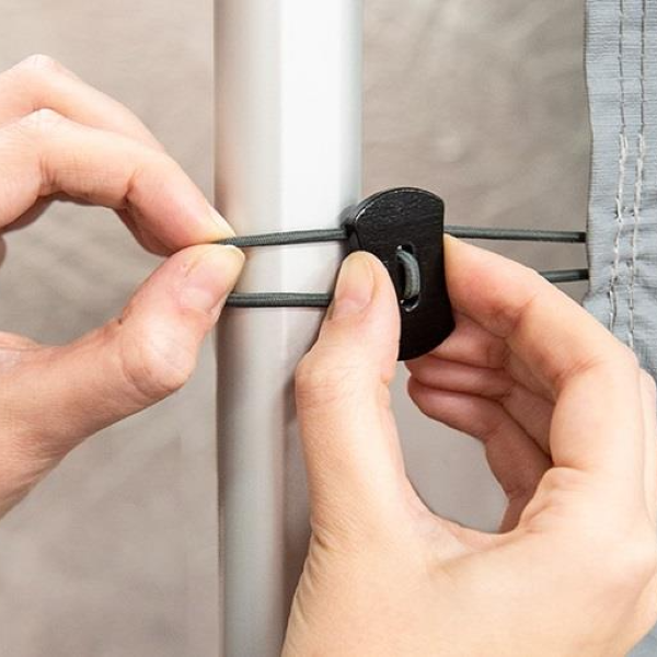 Simple to install using the telescopic rafter, elastic hooks & pegs and can be attached to the awning canopy with the supplied clips