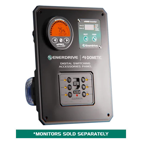 Garmin Digital Switching Panel W175 X H215mm (Epro Monitor & Inverter Remote Cutouts), 5 Year Warranty. Enerdrive | Dometic is proud to present our new Digital Switching Accessories Panel (DSAP) range. We’ve built a number of solutions to grant you access to digital switching, battery monitoring and common accessory outlets – all on the one panel. With multiple solutions available to suit different sizes and applications, the DSAP range is flexible enough to cater for all kinds of installations.