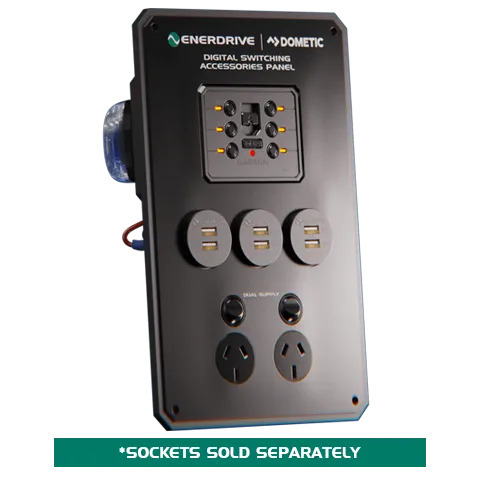 Garmin Digital Switching Panel W175 X H265mm with GPO (12V Sockets Cutouts), 5 Year Warranty. Enerdrive | Dometic is proud to present our new Digital Switching Accessories Panel (DSAP) range. We’ve built a number of solutions to grant you access to digital switching, battery monitoring and common accessory outlets – all on the one panel. With multiple solutions available to suit different sizes and applications, the DSAP range is flexible enough to cater for all kinds of installations.