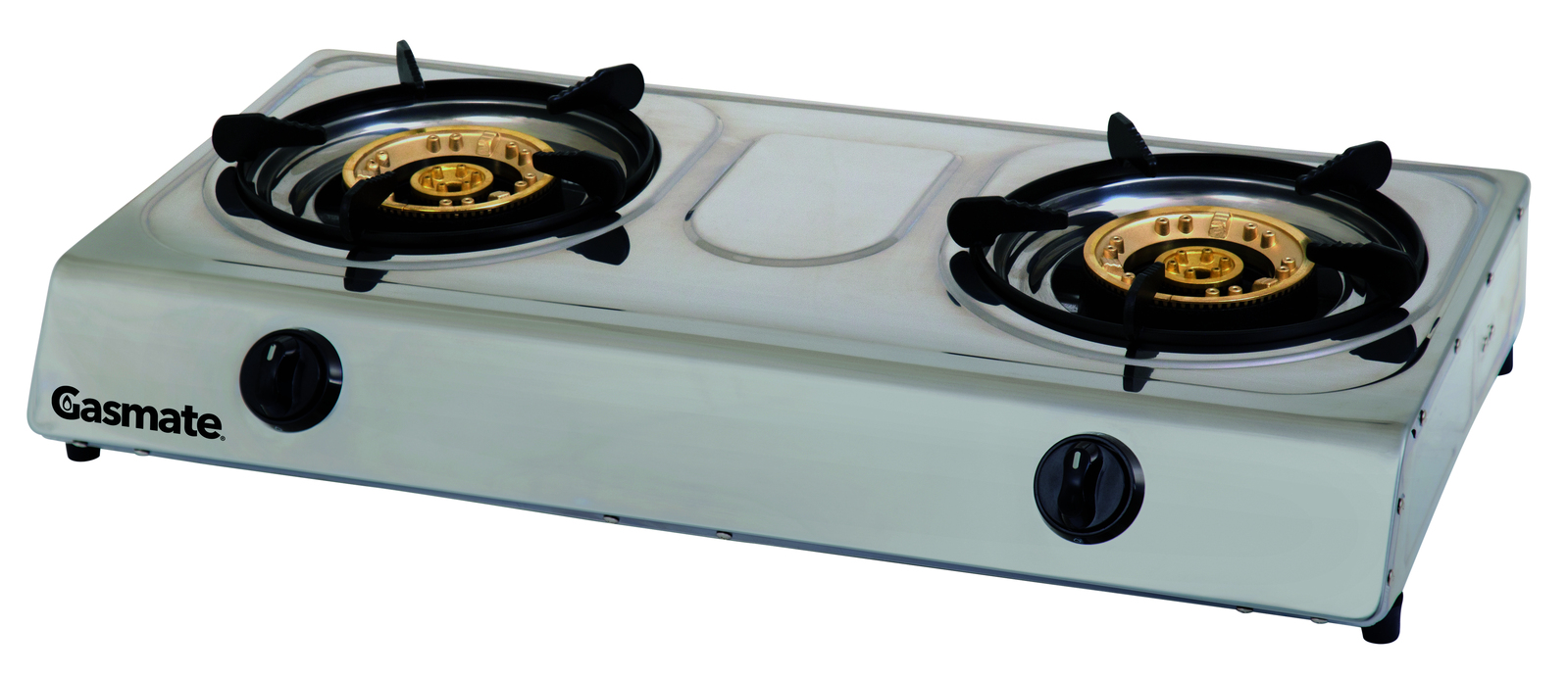 Gasmate Twin Burner Stainless Steel Wok Style Cooker, 1 Year Warranty. Take your outdoor cooking to a new level with the Gasmate Twin Burner Wok Cooker. Featuring high performance dual ring brass burner for quick cooking. Cleaning up is simple with stainless steel body, fascia, drip tray and removable enamel coated trivet. The Twin Burner Wok Cooker comes complete with hose and regulator.