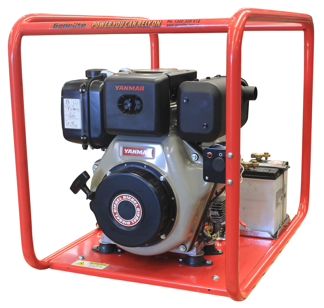 Genelite 6.5kVA Diesel Welder Generator Workstation, powered by Yanmar, 2 Year Warranty. Genelite diesel generators are backed by a comprehensive 2 year warranty and national service agent and spare parts support. Built tough with sturdy roll over frames, these units will provide portable power solutions for many, many years to come and are able to be enhanced with optional accessories if required, including wheel kits, weatherproof outlets and over-sized alternators.