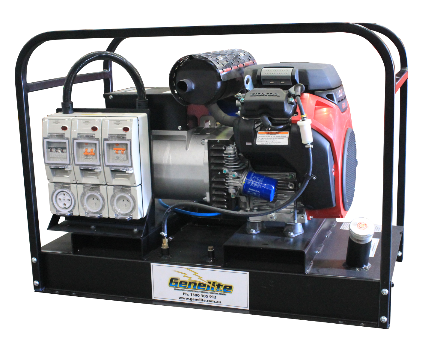 Genelite 16kVA 3 Phase Generator 50L Base Tank powered by Honda, 2 Year Warranty. This range from Genelite proudly features the world-renowned Honda GX series of Engines.