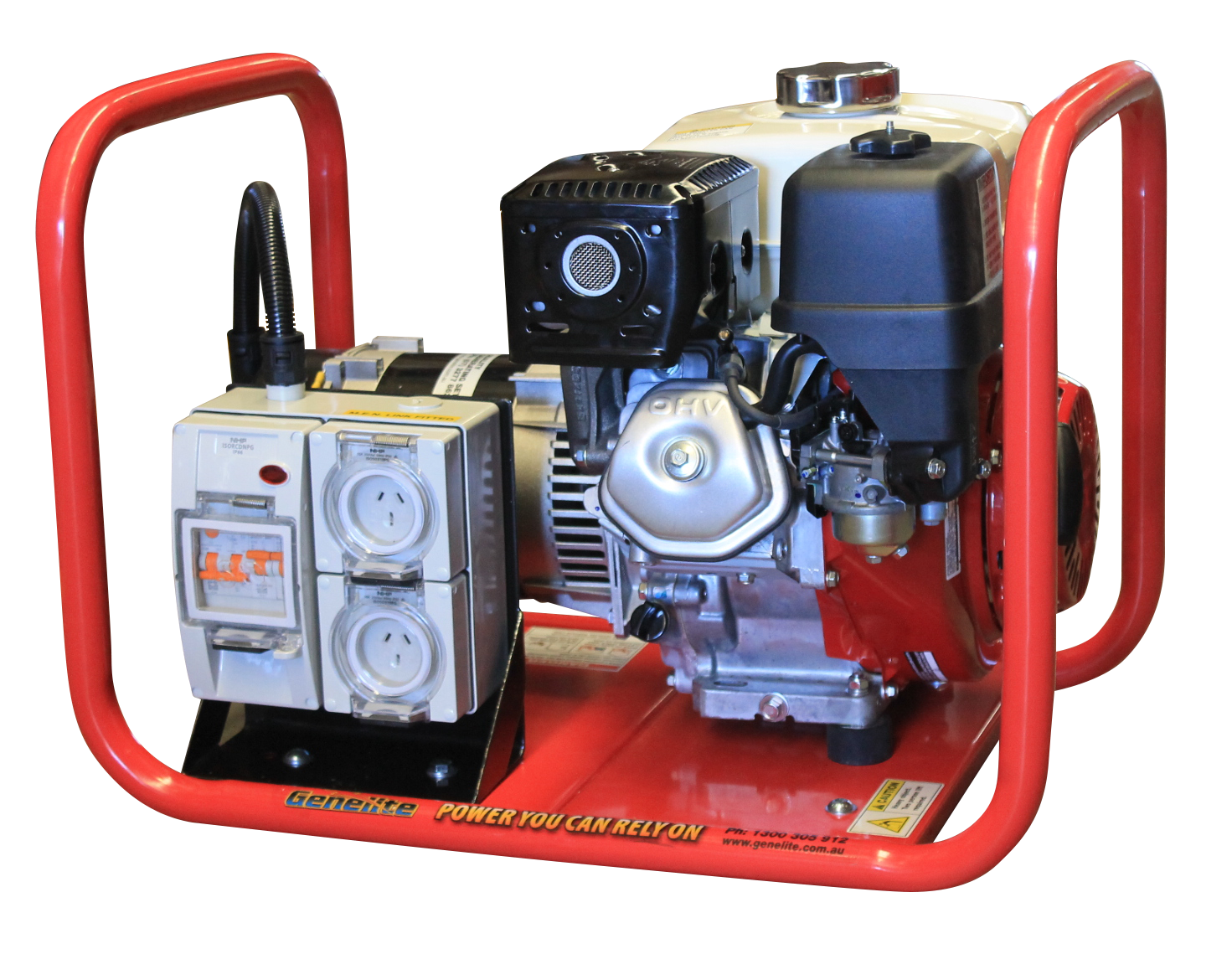 Genelite 4.5kVA Generator, powered by Honda Worksite Approved, 2 Year Warranty. Genelite portable generators are assembeld in Australia using premium grade componentry. They are a popular and reliable brand for tough trade, commercial, rural and general backup power applications.