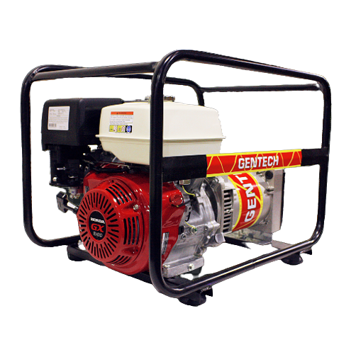 Gentech Honda 5.9kVA Generator, 3 Year Warranty. A versatile and tough genset popular with farmers, builders and other professional contractors. Powered by a GX340 Honda engine, you get running power of 4700 watts and peak power of 5.9kVA. Designed to run your small to medium tools such as drills and saws as well as appliances like pumps and air-conditioners for satellite offices etc.