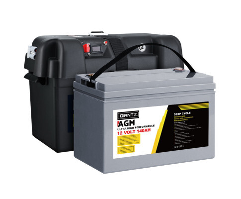 Giantz 12V 140Ah AGM Deep Cycle Battery with Battery Box, 1 Year Warranty. From a powerful battery to a formidable power station. That is what our GIANTZ Deep Cycle Battery and Battery Box combo can do. On its own, the 140Ah 12V battery features an incredible cycle life of up to 1400 cycles. What you get is a longer, consistent and more drawn out charge all the time. And with its advanced AGM technology, the battery enables better electrolyte absorption, cyclic stability and frequent charging without affecting performance. The bolt-down terminals also allow for a more reliable experience, and not least, the high oxygen-recombination efficiency results in superior deep discharge recovery. And not to be outdone, the battery box easily fits the battery and together, they can power up a host of 12V devices including camping lights and portable fridges with its cigarette lighter socket as well as mobile phones and tablets with the two USB ports. The box itself can be charged using solar panels or any power source with its quick-connect Anderson plugs. Better still, the box comes pre-wired, so all you need to do is connect to the deep cycle battery terminals and it is good to go. More power to you. That is definitely true with the GIANTZ deep cycle battery and battery box.