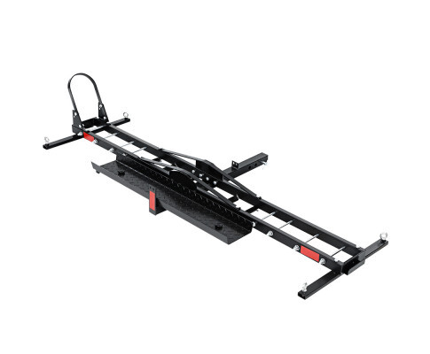 Giantz Motorcycle Carrier - 2" Hitch Mount, 1 Year Warranty. Transport your motorcycle with confidence with the Giantz Motorcycle Carrier. With its 2'' hitch mount, the carrier is compatible with most hitch receivers. Featuring heavy-duty steel construction, the carrier can carry up to 227kg (500lbs) with minimum hassle. It is also designed to enable steady and firm transport with a close-fitting front tyre channel and front wheel chock. The front wheel chock can be adjusted with three available positions. It also comes with four extra tie-down points to better hold the motorcycle firmly in place while on the move. The loading ramp also enables easy up and down and be used either side. Not least, the carrier can also be used for cars with their tyres backed up onto the carrier.
