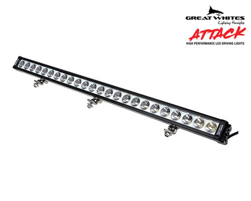 Great Whites 24 LED Attack Driving Light Bar, 3 Year Warranty. High quality 24 LED Attack Light Bar. Great Whites Attack LED driving lights were launched in 2018 and dropped jaws across the country. Their light output, design, lighter weight, simple installation and unique back light impressed 4WD owners and industry press to no end. Great Whites are designed to withstand any environment or driving situation. Includes a Gortex valve to enhance light ventilation and prevent condensation build up inside the light.