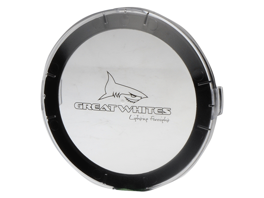 Great Whites Polycarbonate Lens Cover - Clear, 5 year warranty. Shatterproof Polycarbonate protects from rock and debris impact. To suit 170 Series Great Whites Round LED Driving Lights.