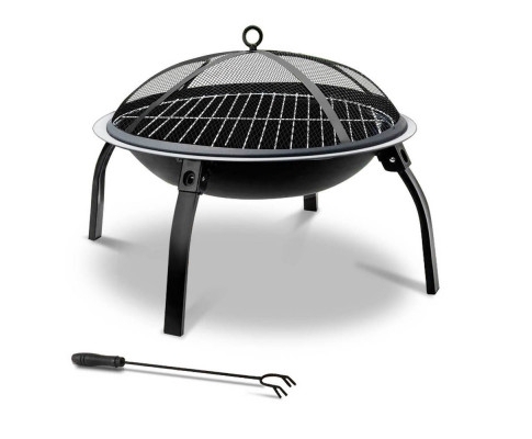 Grillz Portable 30" Camping Fire Pit & BBQ Smoker, 1 Year Warranty. Featuring a sturdy powder coated steel frame with robust legs construction, this portable fire pit provides great heat and rust resistance and a solid foundation to set up a fire. This fire pit is great for small backyards; providing warmth in the gardens and at camping sites. The smart foldable design is ideal for easy transportation and storage.