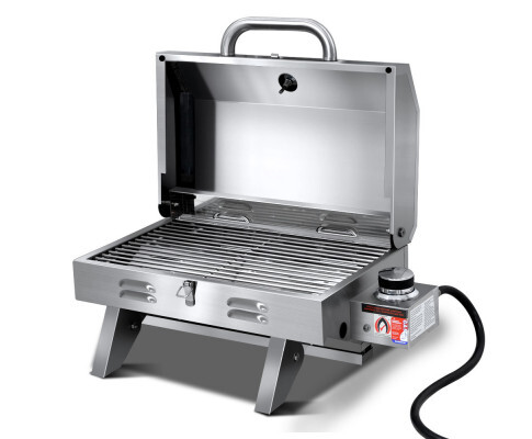 Grillz Portable Gas BBQ Grill, 1 Year Warranty. Have BBQ will eat. And the Grillz Portable Gas BBQ is just perfect for a BBQ anytime, anywhere. Made from durable and high quality stainless steel, the BBQ comes with a convenient fold-up design with retractable steel legs, large front carry handle and a locking lid. Great features include a 12,000BTU stainless steel U-shape burner with high heat conduction for better efficiency, safe piezo electric twist start ignition, integrated thermometer for enhanced cooking, grease collection tray for easy cleaning after and a dedicated flame tamer to prevent food waste from dropping onto the burner. Together with its large cooking area, the Grillz Portable Gas BBQ is right at home with sumptuous meals ready in minutes.