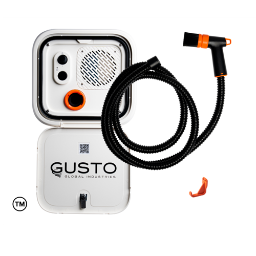 Gusto Blower White Unit. BLW004, 1 Year Warranty. The Gusto Blower unit is a purpose-built, air-powered and water-free cleaning device. It is sensor operated, simple to use, runs off 12V power and seamlessly recesses into your van.