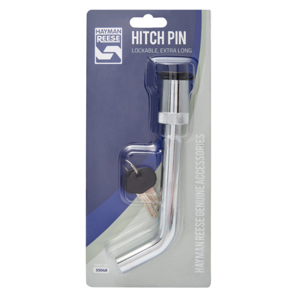 Hayman Reese Extra Long Lockable Hitch Pin, 1 Year Warranty. The Extra Long Lockable Hitch Pin enables you to lock your Trailer Ball Mount onto the towbar preventing theft. Fits all common hitch receivers and boasts an extra long pin for easy access. Features a dust and weather proof cover to protect the lock.