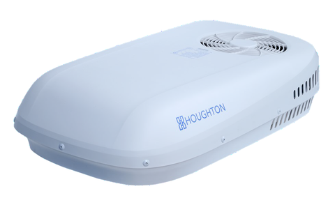 Houghton Belaire HB2400 Reverse Cycle Roof Top Air Conditioner, 2 Year Warranty. The ultra-light, stylish, low profile canopy and plenum make this unit the perfect choice for light caravans. The Houghton Belaire HB2400 is designed to fit perfectly in modern caravans and motorhomes, with an easy to read LED display showing mode settings and temperature.
