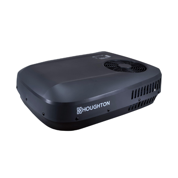 Houghton Belaire HB2800V Black Inverter Roof Top Air Conditioner, 2 Year Warranty. The Houghton Belaire HB2800V is a low profile, light & powerful unit with new inverter technology. At only 855mm in length it provides outstanding performance & greater flexibility for hatches, solar panels & other equipment without sacrificing year-round comfort. True 'soft start' performance. Excellent performance with generator & battery/ inverter power systems.