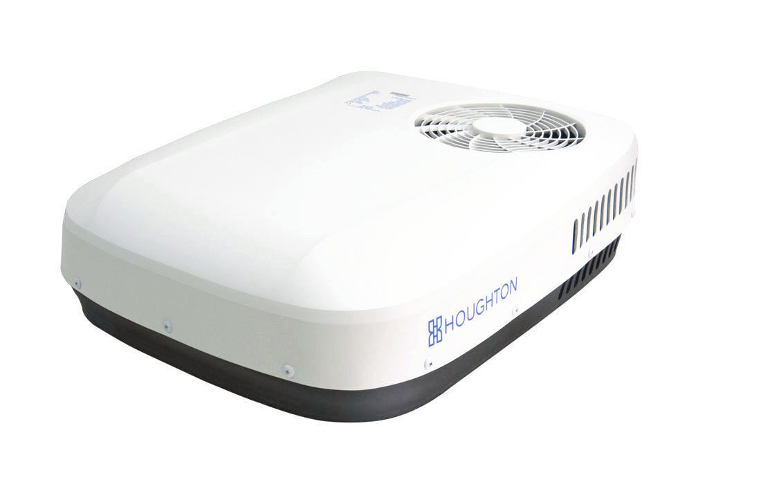Houghton Belaire HB2800V Inverter Roof Top Air Conditioner, 2 Year Warranty. The Houghton Belaire HB2800V is a low profile, light & powerful unit with new inverter technology. At only 855mm in length it provides outstanding performance & greater flexibility for hatches, solar panels & other equipment without sacrificing year-round comfort. True 'soft start' performance. Excellent performance with generator & battery/ inverter power systems.