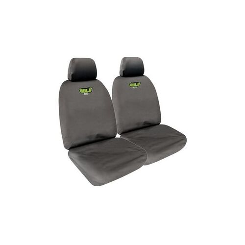 Hulk 4X4 Front Seat Covers, 5 Year Warranty. This seat cover range is made from premium quality blended poly and cotton canvas. This allows them to be super strong and comfortable as well as waterproof, tear and rip resistant.
