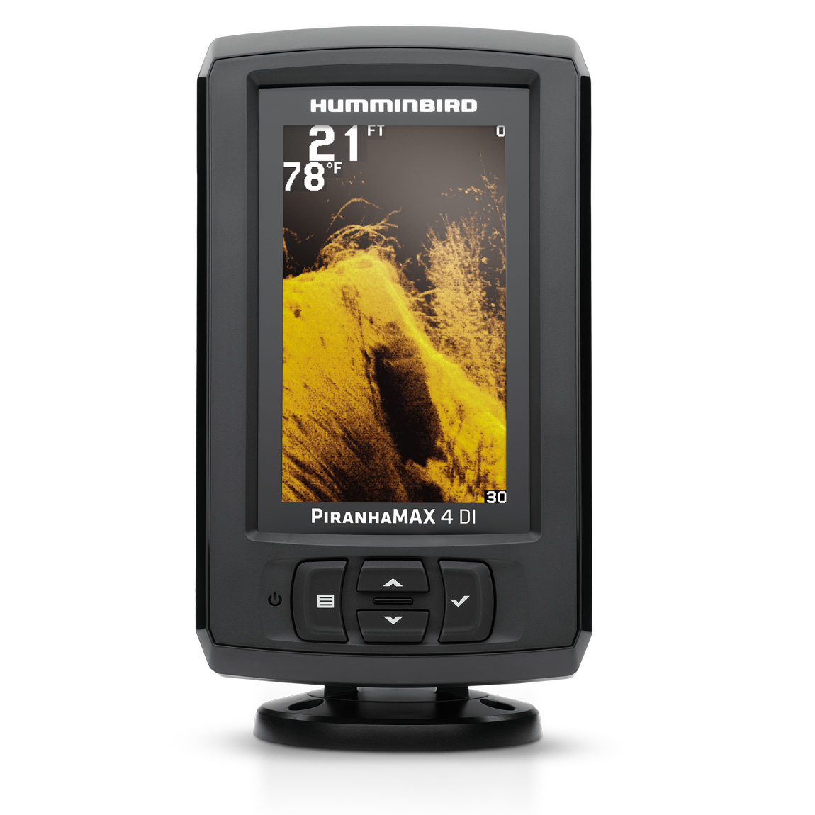 Humminbird Fish Finder PiranhaMax 4 DI, 2 year warranty.  The new Piranha MA Series is giving you more to chew on with a 4.3" display and the addition of Down Imaging on select models. So you can see what’s below your boat with great clarity.