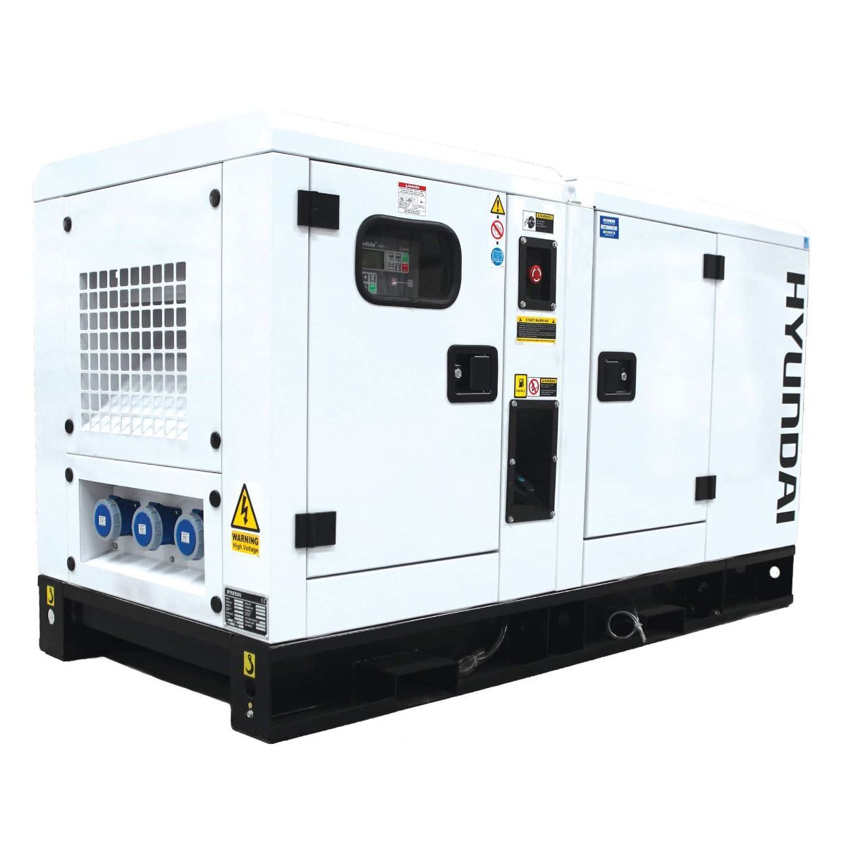 Hyundai 22kVA Three Phase Diesel Generator, 1 Year Warranty. The Hyundai DHY22KSE is a three phase diesel generator with a maximum output of 22kVA. Designed for domestic or professional use, the DHY22KSE is powered by a 21hp HY490 diesel engine and is equipped an AVR alternator to produce clean energy. This means that any sensitive electronic equipment, such as televisions, PCs and laptops, can safely be powered by the DHY22KSE.