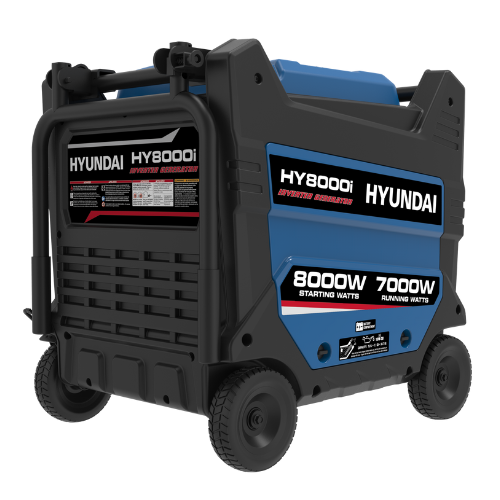 Hyundai HY8000i 8000w Inverter Generator, 1 Year Warranty. The HY8000i is a compact yet powerful portable inverter generator from Hyundai providing a convenient and cost-effective source of power, producing 8000w/10kVA the HY8000i is ideal for caravans and motorhomes as it allows you to take the modern luxuries from home with you wherever you go.