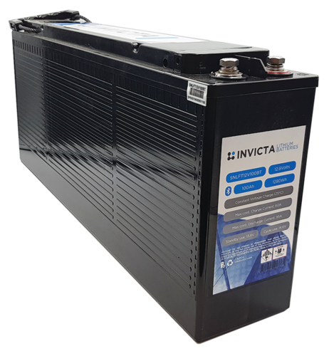 - Invicta 12V 100Ah Front Terminal Lithium Battery with Bluetooth