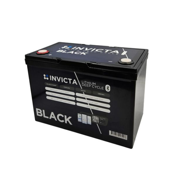 Invicta Black 12V 100Ah Lithium Battery with Bluetooth, 5 Year Warranty. Introducing Invicta Black, a new range of affordable lithium batteries designed to deliver exceptional performance without breaking the bank.